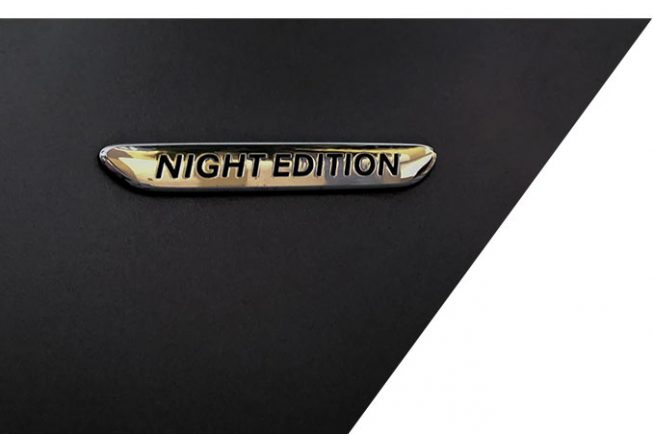 The Night Edition wears AMG front and rear fascias, a set of 14-spoke AMG wheels in black, and Night Edition badging on the front fenders. The grille, side mirror housings, side sills are done in black and Matte-gray body paint.